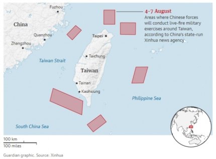 Влада Китайської народної республіки наступного дня після візиту спікерки Палати представників США Ненсі Пелосі наказала розпочати військові навчання довкола Тайваню.