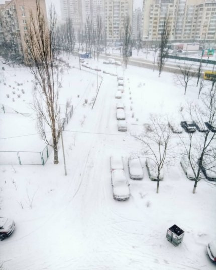 У зв'язку зі снігопадами в Києві в столиці для ліквідування наслідків негоди задіяно майже 400 одиниць снігоприбиральної техніки. Щоб уникнути ожеледі, дорожнє покриття обробляють спеціальними матеріалами.