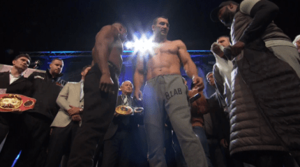 Також боксери востаннє перед боєм зійшлися у дуелі поглядів. І знову обоє одночасно відвели погляди.