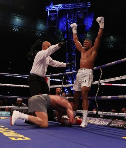 Джошуа завдав ще один потужний удар і Кличко вдруге за бій опинився у нокдауні. Володимир піднявся, але пропустив серію сильних ударів, після яких знову впав і вже не зміг продовжити бій.