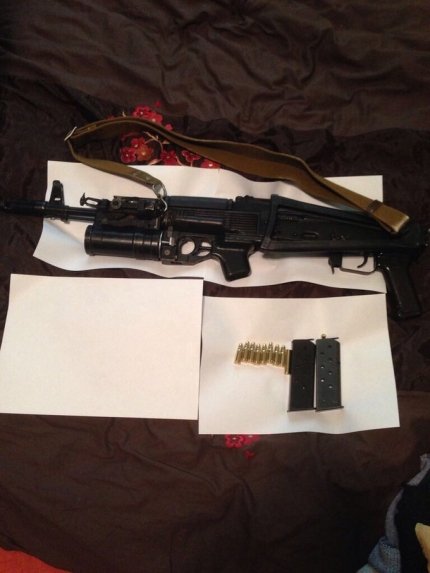В рамках обшуків виявили та вилучили: автомат АКС-74 з приєднаним підствольним гранатометом ГП-25, патрони 7,62 мм калібру до ТТ, патрони 4,62 мм калібру до "Нагану", магазини до ТТ, патрон 12,7 мм калібру, патрон 7,62х39 мм калібру, гранату Ф-1, 34 гранати до ВОГ-25П, 9 гранат до ВОГ-25, 22 запали до УЗРГМ, 8719 набоїв.