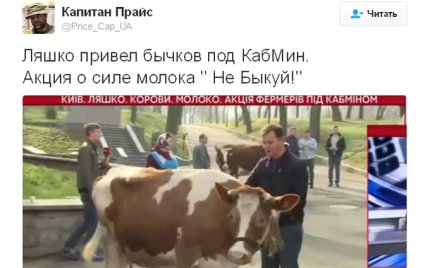 Користувачі соцмереж нещадно висміяли акцію лідера Радикальної партії Олега Ляшка, який привів корів до стін Кабінету Міністрів.