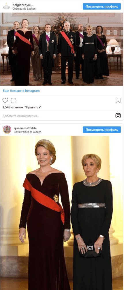 Варто зазначити, що на урочистий вечір в палаці перша леді одягнула чорне плаття від Louis Vuitton, яке було оздоблене стразами під грудьми та біля шиї. Образ доповнив чорний клатч та масивні сережки. Королева Бельгії в свою чергу одягнула оксамитову сукню з глибоким декольте від Giorgio Armani.
