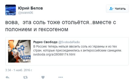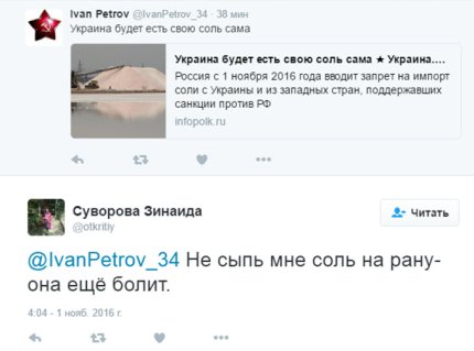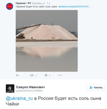 «А Росія їстиме сіль сина Чайки», - коментує в Twitter «Самуїл Іванович».