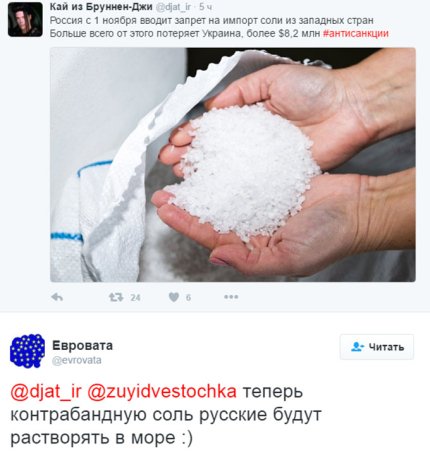 «Тепер контрабандну сіль росіяни розчинятимуть у морі :)», - пишуть в Twitter «Євровата».
