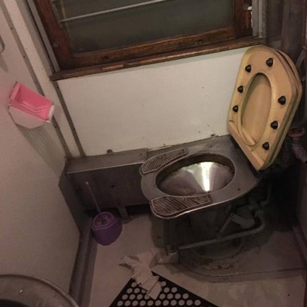 "Туалет в поїзді під час нашої нічної поїздки з Одеси до Харкова в Україні! Ці поїзди старі за всіма параметрами!" - пишуть вони.