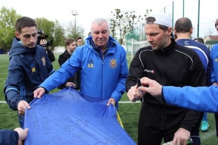 Свої підписи і побажання на прапорі залишили Юрій Максимов, Сергій Нагорняк, Володимир Лозинський, Едуард Цихмейструк, Віталий Рева, Володимир Єзерський, Сергій Беженар, Анатолій Дем'яненко та інші легенди українського футболу.