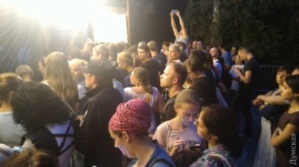 Однак люди продовжували прибувати. У якийсь момент почалася тиснява, потім одесити, які не потрапили в театр, скандуючи «Андрію, Андрію», спробували зайти всередину. Втрутилася охорона, яка відтіснила натовп.