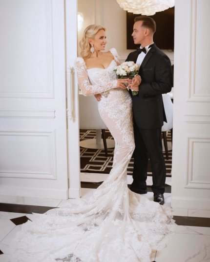 Разом із чоловіком Андрієм Диким Лілія позувала у новій весільній фотосесії. Телеведуча обрала сукню українського дизайнера Adamaris Bridal.