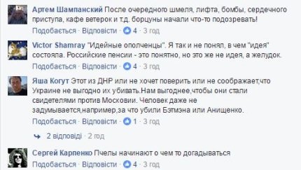 "Коли говорять про найбільш відомих і популярних осіб ополчення, від Бетмена до Гіві, то забувають, що за ці 2,5 року загинули сотні "ополченців" і командирів "середньої ланки" - менш відомих, але тих, на кому трималася наша лінія оборони, в кого був живий "дух 14-го". Саме тому "Мінськ вбиває". Подальша дія Мінських угод і нинішній формат позиційної війни вестиме до остаточного винищення всіх, хто починав Донбаське повстання 2014 року. Цей "паскудний мир" потрібно закінчувати", - резюмував росіянин.