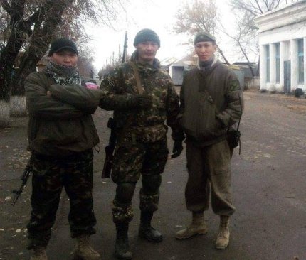 На фото - троє озброєних хлопців, схожих на бурять, з шевронами так званої "Новоросії".