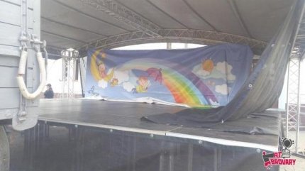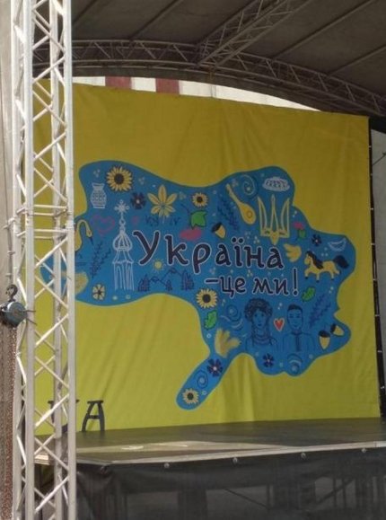 У Броварах Київської області на головній сцені міста, підготовленій до проведення урочистостей з нагоди Дня незалежності, повісили карту України без Криму.