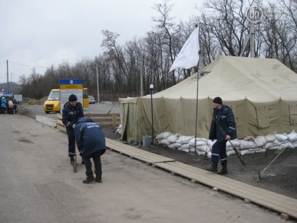 Вже на наступний день після відкриття пункту пропуску вишикувалась величезна черга з легкових машин і мікроавтобусів по обидва боки КПВВ. У штатному режимі тут працюють представники державної служби з надзвичайних ситуацій, а гарячий чай, каву і супи готують волонтери організації HelpAge.