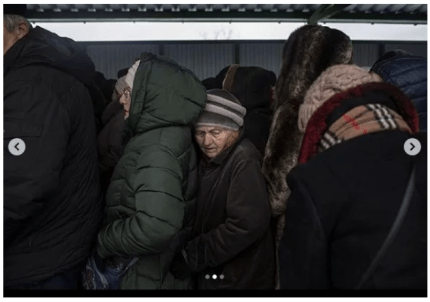 За словами журналіста, перший знімок був зроблений у лютому 2019 року. На ньому українці чекають, щоб увійти в контрольовану урядом зону на прикордонному переході між Україною і окуопваною територією. Інші фото були зроблені в лютому 2018 року.