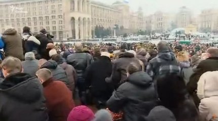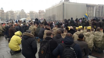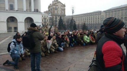 У Києві на Майдані Незалежності українці прощаються із загиблими під Авдіївкою бійцями АТО.
