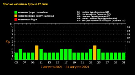 Магнітні бурі у серпні 2021 - прогноз (фото - інфографіка ФІАН)