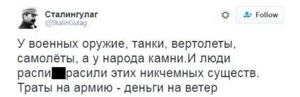 "Ми стали свідками того, як завдяки громадянському суспільству, новим технологіям, соціальним мережами, айфонам і т.д. вперше вдалося переворот не здійснити, а зупинити. Перша Фейсбук-еволюція в історії людства. UPD. Сучасна наука біологія говорить про те, що еволюція - це розвиток не завжди в правильному напрямку. Буває, що вид еволюціонує в глухий кут, набуваючи неконкуретні якості, що призводить до його вимирання. Просто еволюція - це інакше ніж революція. Категорій "точно погано" / "точно добре" тут не може бути в принципі".