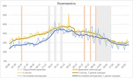 “Частка позитивних тестів також припинила знижуватись і зараз становить 19.9% за кількістю позитивних тестів і 17.7% за кількістю нових випадків”, - резюмували в академії.