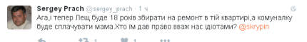 Реачард Прікетт: «Як чесна людина він тепер повинен - одружитися / вбитися / подарувати хату дітям Гонгадзе / зізнатися в ганебних зв'язках з Григоришиним, дати в морду Ситнику))».