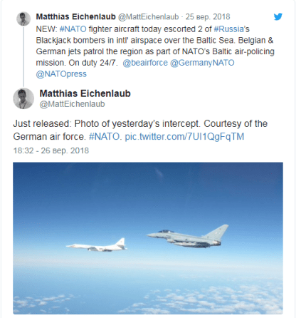 Німецькі винищувачі Eurofighter були підняті для супроводження надзвукових стратегічних бомбардувальників-ракетоносців Ту-160, які пролітали над Балтією.