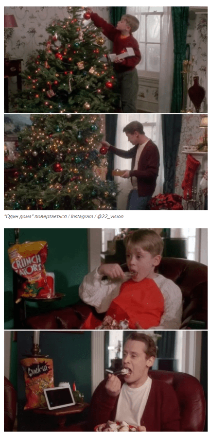 Що цікаво, нещодавно мережу заполонив ролик від Google, у якому Маколей Калкін сидить за знаменитим столом і вечеряє напівфабрикатами в очікуванні грабіжників. За декілька днів, відео набрало більше, ніж 18 мільйонів переглядів.