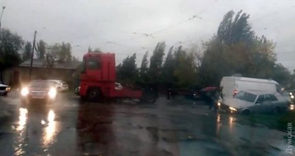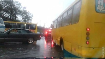 В районі Пересипського моста збирається вода, і в сторону селища Котовського утворилася велика пробка. Підтоплено провулок Ширяївський. Підтоплює і вулицю Приморську, яка до того ж заблокована впалим деревом.