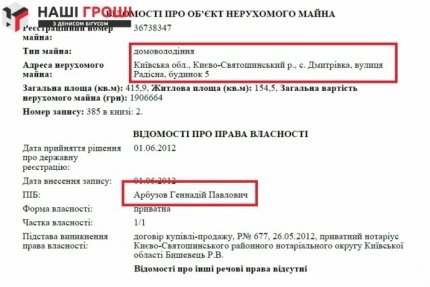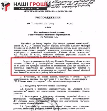 Лісова ділянка в рамках Дмитрівської сільради Києво-Святошинського району була оформлена на батька банкіра - Геннадія Арбузова.