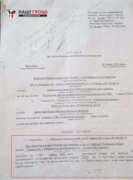 Тим часом, незважаючи на розрив договору лісництва і компанії "Укрмістобудпроект", записаної на помічників нардепа, рішення Київської облради про виділення лісових угідь залишилося в силі, а це - ключовий документ, оскільки саме рішенням облради виділяється земля під мисливські угіддя.