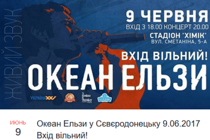 9 червня у Сєвєродонецьку з безкоштовним концертом виступить український рок-гурт "Океан Ельзи".