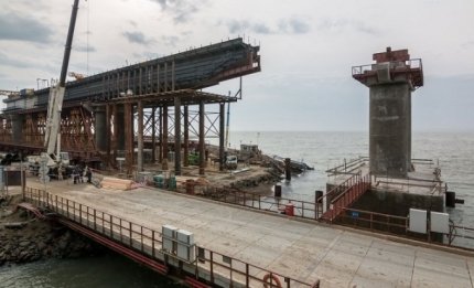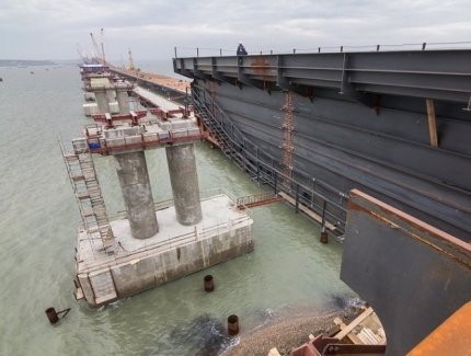 Окупанти Криму приступили до нового етапу будівництва Керченського мосту. Вони вже почали прокладати прольоти під залізницю.