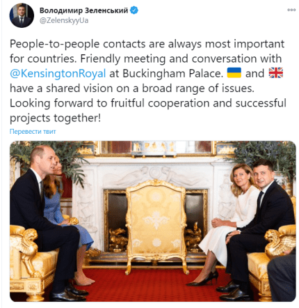 "Людські контакти завжди найважливіші для країни. Дружня зустріч і розмова з супругами Кембриджськими в Букінгемському палаці. Прапор України та прапор Великої Британії розділяють бачення з багатьох питань. Попереду - плідна співпрацю та успішні проекти", - прокоментував зустріч з Кейт Міддлтон і принцом Вільямом Володимир Зеленський .