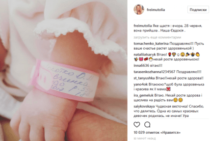 "Яке щастя: вчора, 28 червня, вона прийшла. Наша Євдокія", - підписала зворушливу світлину Фреймут.