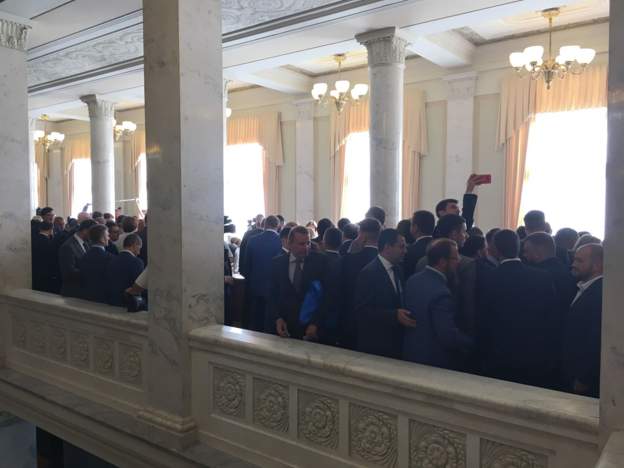 На вході до будівлі Ради сформувалися черги. Також аналогічні штовхання помічені й у місці офіційного складання присяги та отримання постійних посвідчень.