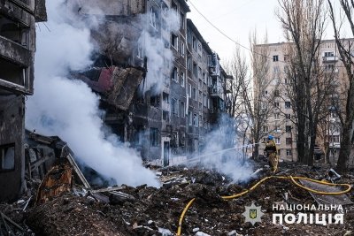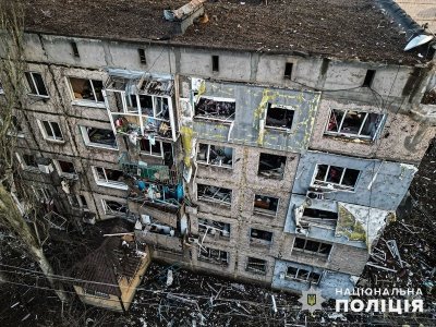 Поліція повідомляє, що унаслідок обстрілу п’ятиповерхівки поранено 6 цивільних, зокрема троє дітей — 7-річний хлопчик і дві дівчинки 12 та 16 років.