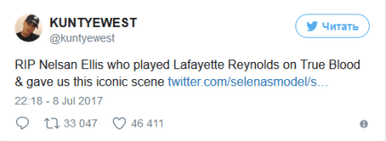 На 40-му році життя в США помер актор Нелсан Елліс, відомий, в першу чергу, за роллю у популярному серіалі "Справжня кров" (True Blood).