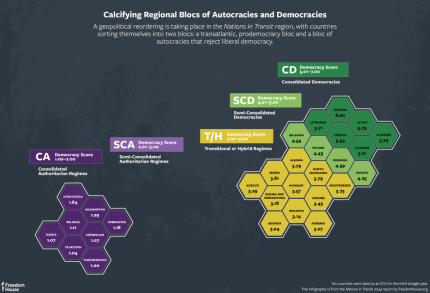 Зазначається, що авторитарні режими посилюють свої атаки і підривають демократичне врядування в регіоні.