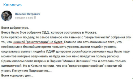Повідомляється, що Сурков зустрівся з бойовиками після з'їзду організації "Союз добровольців Донбасу" (СДД). За зачиненими дверима він оголосив їм підсумки нормандського саміту і відповів на питання про подальшу долю окупованого Донбасу. Коментуючи підсумки нормандського саміту, "сірий кардинал" Путіна заявив, що не бачить серйозної різниці між командами Порошенко і Зеленського. Як пишуть в мережі, бойовики в свою чергу заявили Суркову, що не збираються йти з Донбасу, але він запевнив їх, що "ніхто зливати Донбас не збирається".