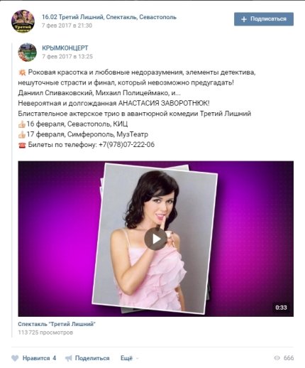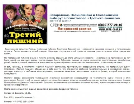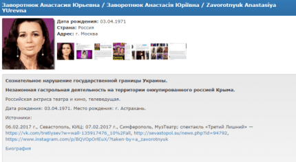 Заворотнюк виступала зі спектаклем в Севастополі і Сімферополі в лютому 2017 року.
