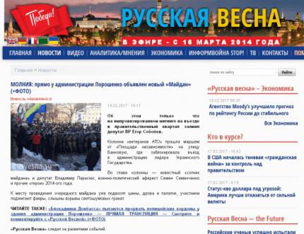 Про це повідомляє ONLINE.UA з посиланням на сайт "Російська весна".
