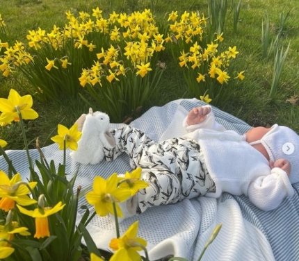 На новому фото маленький син принцеси Євгенії позує на галявині. Ймовірно, онука королеви Єлизавети вирішила вийти на невелику прогулянку з малюком. Так вона насолоджувалась першим у житті Днем матері. Август Філіп лежить на невеличкому світлому покривалі. Його одягли у штани з принтом, в'язаний білосніжний светрик та шапочку. Цього разу принцеса Євгенія вирішила не показувати обличчя немовля.