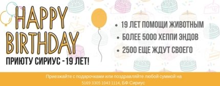 У день свого народження "Сіріус" закликав українців не забувати про тварин з притулку і ставиться до них відповідально, так як вони не іграшки. Там також поділилися планами на майбутнє, зізнавшись, що мріють побудувати притулок європейського рівня, в якому будуть створені максимально комфортні умови для тварин до того моменту, поки вони не потраплять в сім'ю. Також в притулку вірять в те, що в Україні приймуть важливий і, головне, діючий Закон про гуманне ставлення до тварин, який передбачатиме покарання для людей за знущання над ними.