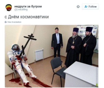 У вівторок, 12 квітня, в Росії і деяких інших пострадянських країнах відзначають Всесвітній день авіації і космонавтики. Користувачі соцмереж висміяли святкування цієї дати в країні духовних скріп.