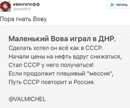 У мережі набирає популярність іронічний вірш про президента РФ Володимира Путіна, який має намір відродити Радянський Союз, але зазнає краху через зниження цін на нафту.