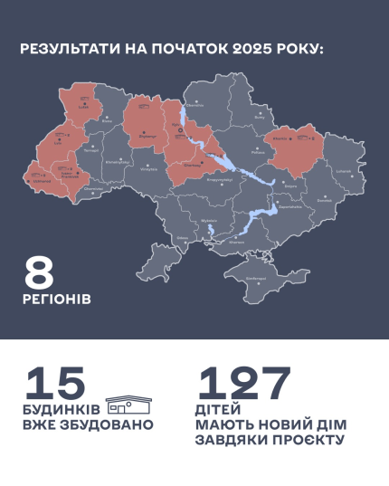 У межах першої хвилі будівництва було зведено 15 будинків у 8 регіонах України для великих прийомних родин, які втратили житло або були змушені покинути його через бойові дії чи окупацію.