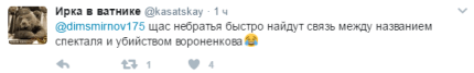 У день вбивства екс-депутата Держдуми РФ Дениса Вороненкова, яке сталося у Києві, президент РФ Володимир Путін відправився в театр на виставу з показовою назвою "Остання жертва".