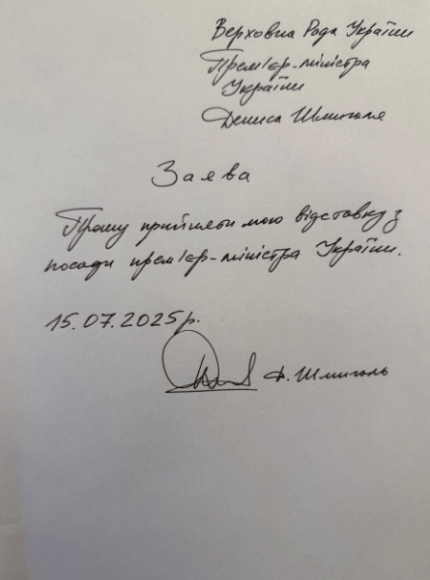 15 липня очільник уряду України Денис Шмигаль подав заяву про відставку. Він опублікував у соціальних мережах відповідний документ.