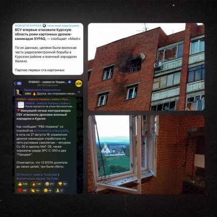 Втім, "прикривала" – голосно сказано. Потрапила вона лише у житловий будинок у Курську. Ось до якого жалюгідного стану, небезпечного для самих громадян, доведено оборону країни! Курський губернатор бреше, що в багатоповерхівку врізався наш дрон - і заважає міністерству оборони, яке намагалося зовсім замовчати про пошкоджену будівлю і просто зам'яти свою ганьбу. Народжені повзати – літати не будуть. Російське небо і російська земля належать не путінської погані, а вільним російським людям, – підсумовують представники РДК.