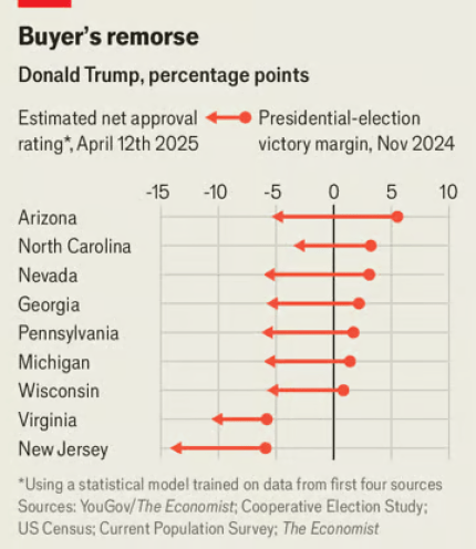 Вже є ознаки цього. Серед латиноамериканських респондентів чисте схвалення Трампа становить мінус 37 процентних пунктів, а серед тих, хто молодше 30 років, — мінус 25.