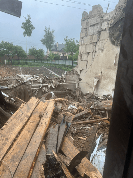 Також пошкоджено дахи житлових будинків, надвірну споруду, 2 гаражі, 3 легкових автомобілі, паркан та газовий трубопровід.