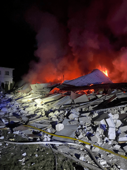 Сьогодні вночі ворог здійснив масовану атаку БпЛА. Унаслідок прямого влучання та падіння уламків у Кременчуцькій громаді знищено будівлю одного з підприємств.